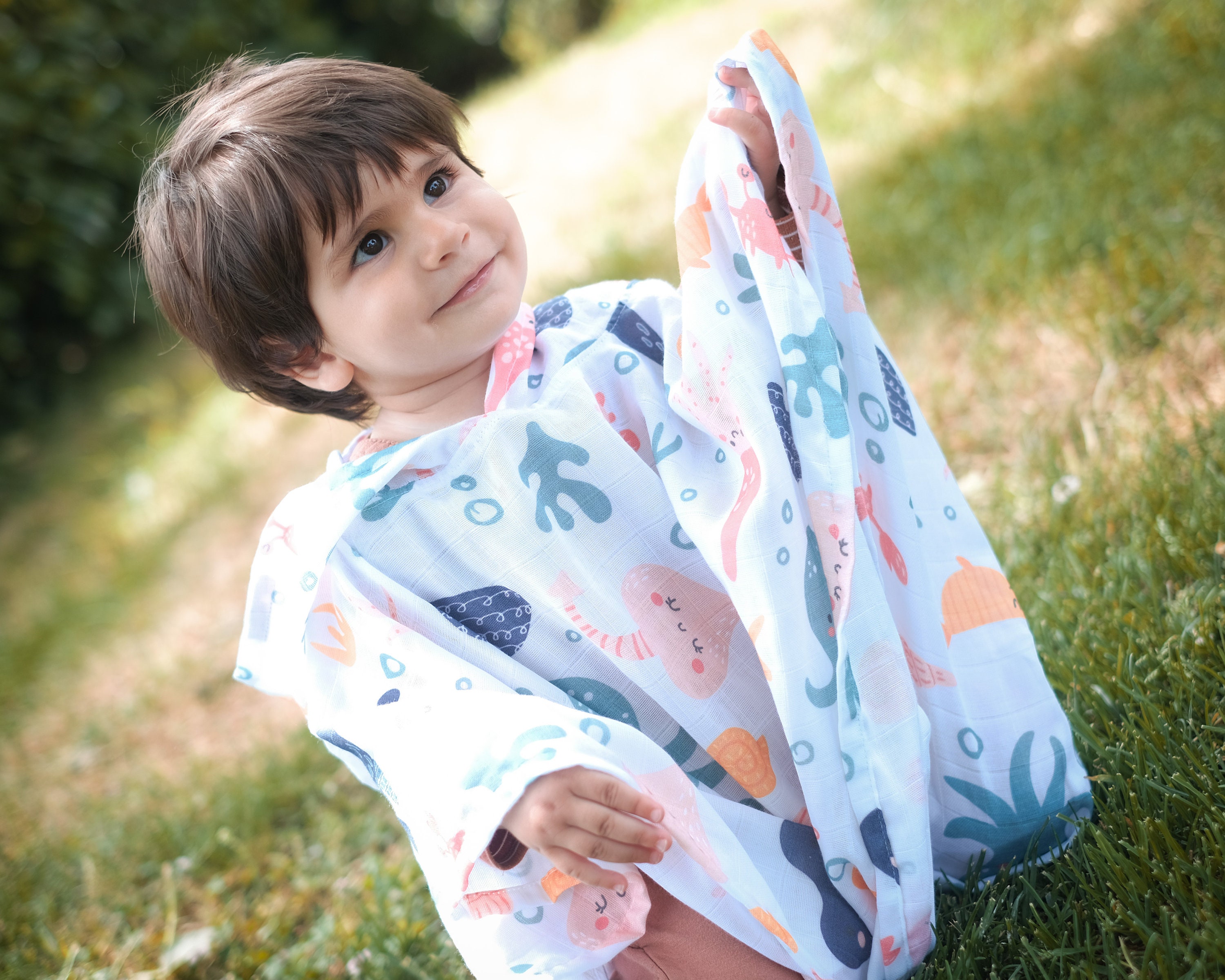 Bathing Poncho For Babies Green Medium Metallized Bedding Decor